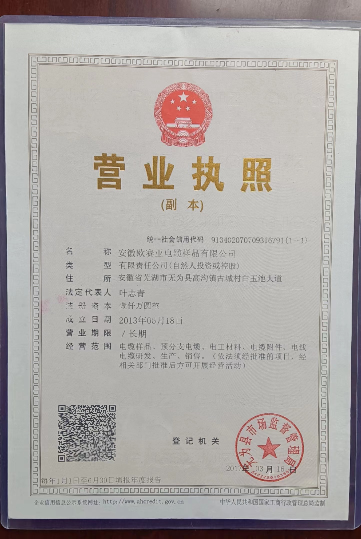 - 安徽歐賽亞電纜樣品有限公司座落在中國電纜之鄉(xiāng)--高溝鎮(zhèn),公司于2012年成立,占地面積15000平方,現(xiàn)有設(shè)計(jì)師6名,樣品技師17名,員工63人。先后引進(jìn)德國銑...